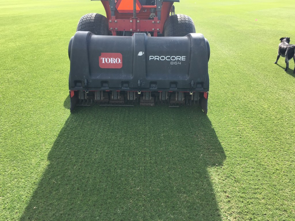Aerification is a critical practice for maintaining healthy, high-performing turf. Over time, soil becomes compacted from traffic and use, restricting the flow of air, water, and nutrients. Aerification relieves this compaction by creating channels that increase oxygen in the soil, allowing the grass to properly respirate while also improving drainage and overall root development.